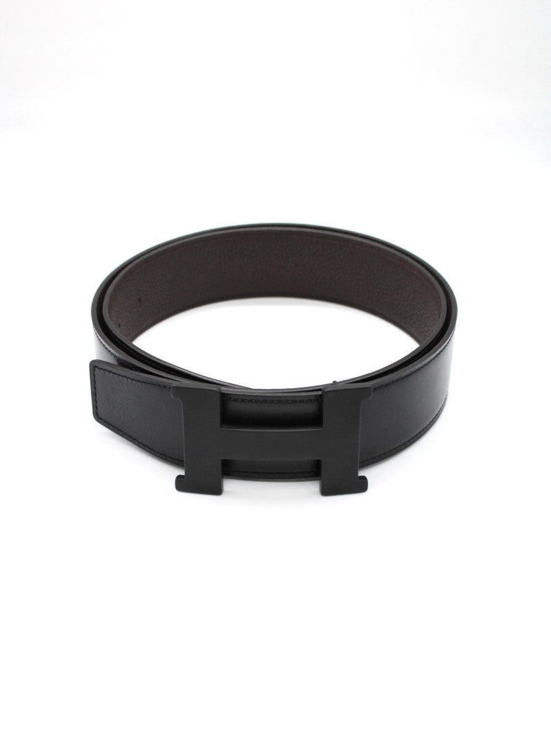 Cintura Hermes Double Pelle Nera Liscia E Pelle Testa Di Moro Martellata